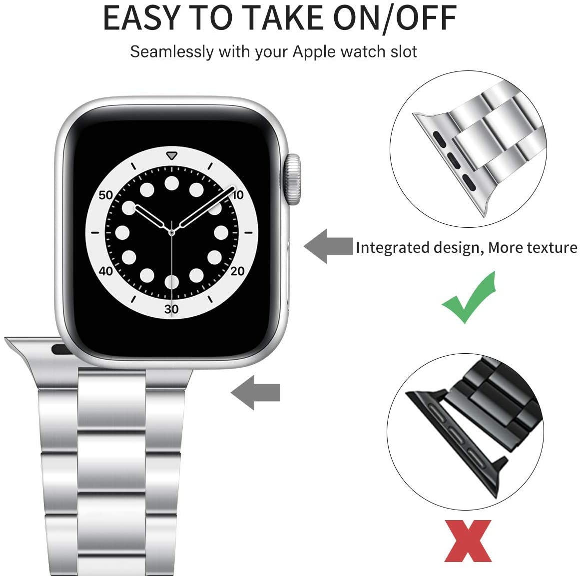 Metal Link Band compatible with Apple Watch, Stainless Steel Strap