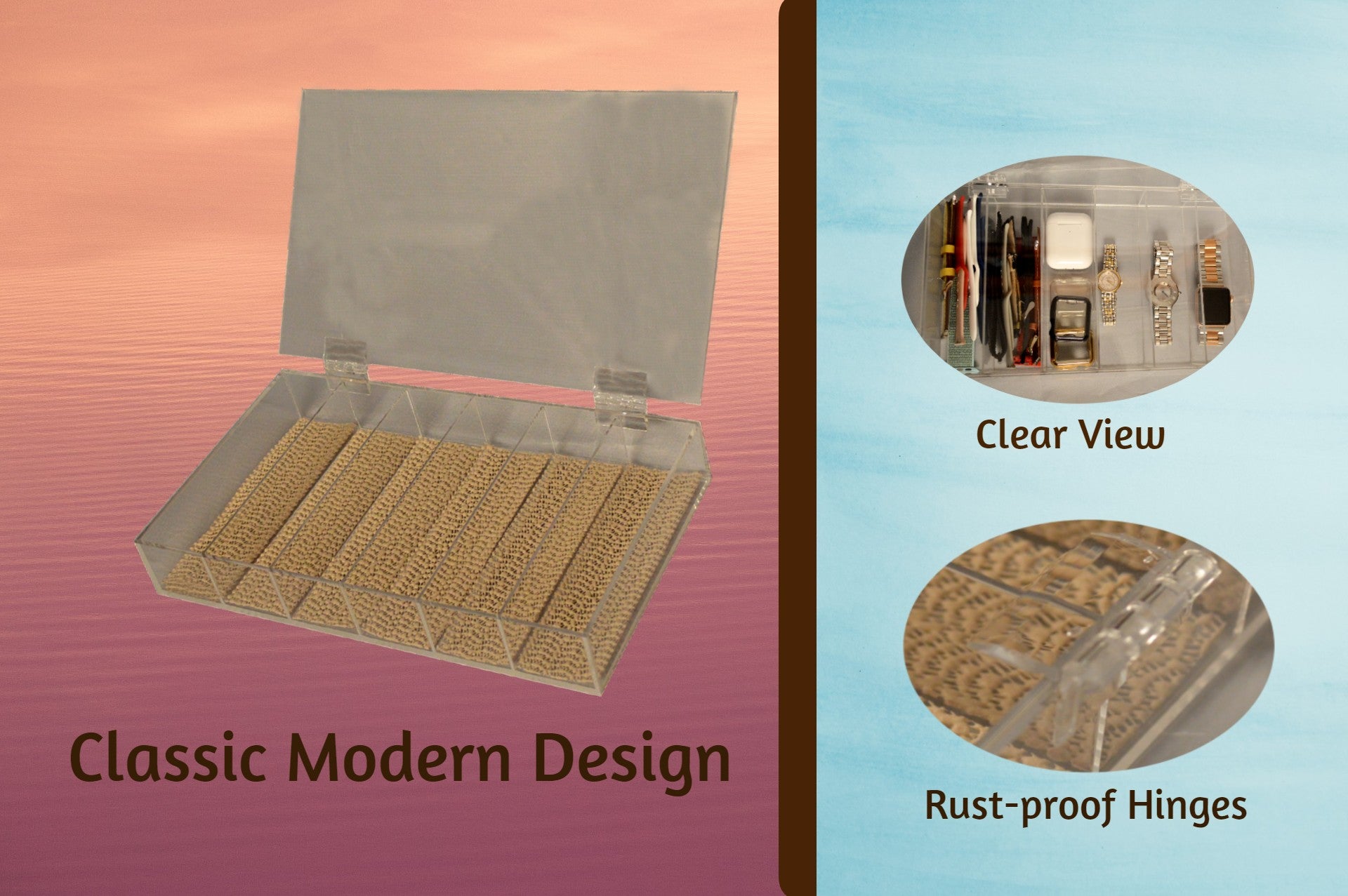 - CLEAR & LIGHTWEIGHT onstruction. Easy access & view your favorite watch bands and accessories.