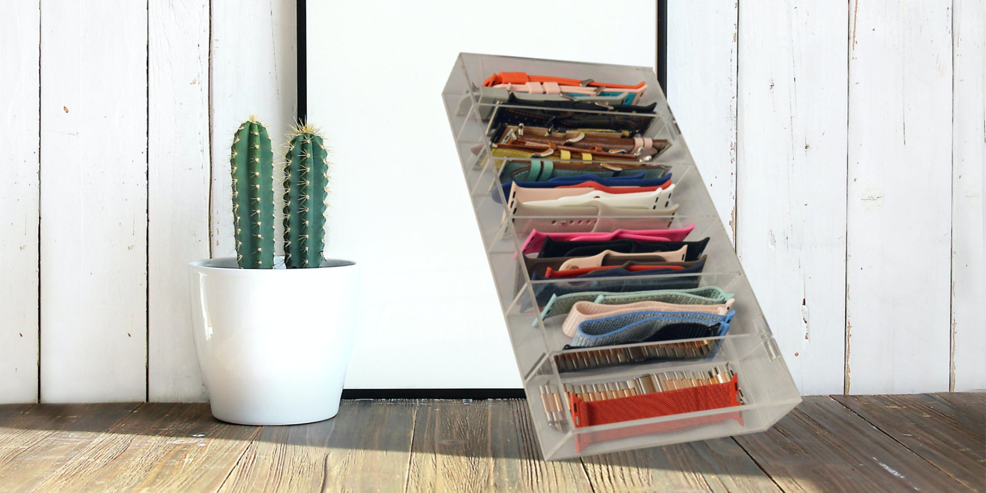 - CLASSIC modern design. Organize & store up to 40+ sets of Apple watch bands/straps.