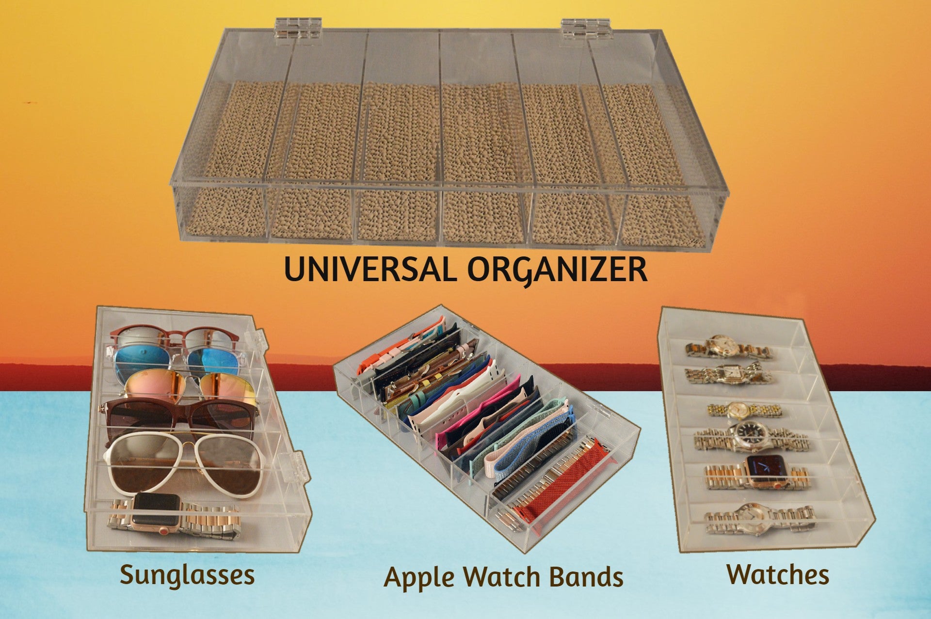 - COMPATIBLE organizer. Universal holder for Fitbit, Blaze, Huawei smart watches, sunglasses, eyeglasses and jewelries